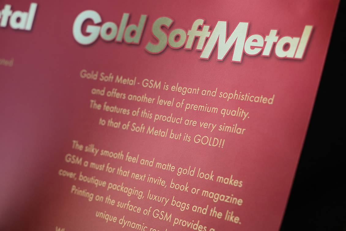 Gold Soft Metal is perfect for book/magazine covers, premium cosmetic & pharmaceutical packaging, invitations, direct mail, posters and business cards. Feel free to contact your nearest Allkotes for a sample of GSM. Our team is standing by.