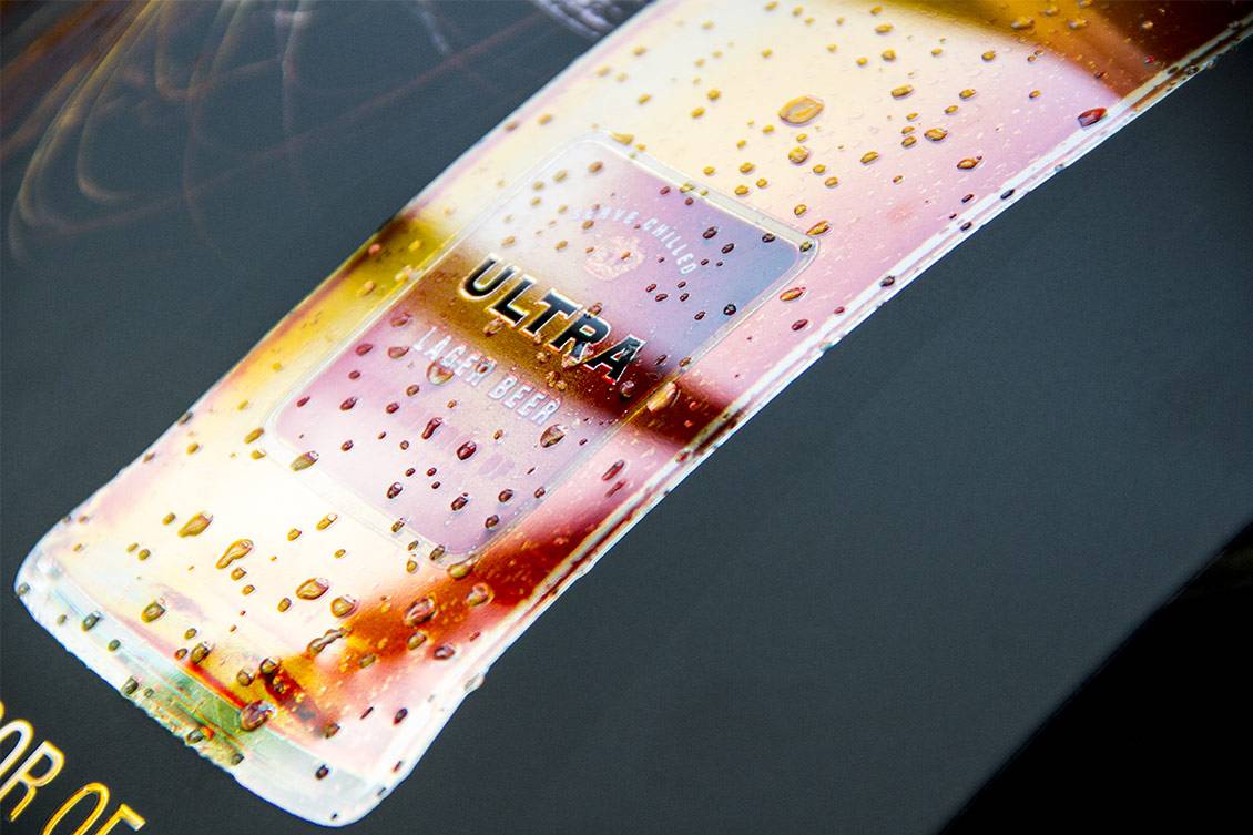 Increase your design profile with the raised effect of UltraKote. A rich clear glossy high build coating that adds lift for that ultimate effect. UltraKote offers a three-dimensional look and feel to your printed sheet. The graphic design is critical in achieving amazing results with UltraKote, make that splash of water look real or bring your background to life with a pattern.